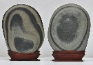 与水墨艺术有异曲同工的是长江特有的水墨画面奇石:在浑圆的卵石上,或浓涂淡染,或勾划填抹,或浸渍泼洒,或细笔描画,幻化万千,有丰富的表现与强烈的感人魅力。千姿百态的水墨画韵足以笑傲人类创作的水墨画作品。然而,其艺术魅力与审美价值至今尚未得到石界的了解,可谓养在乡闺无人识。从己发现的长江水墨画面石反映出的特征,有变化起伏极大的抽象画面,有泼墨写意的风景、人物画面,有兼工带写的各类题材画面,其天公妙造的韵味与丰富的艺术表现力,是珍贵而稀有的天然奇葩。