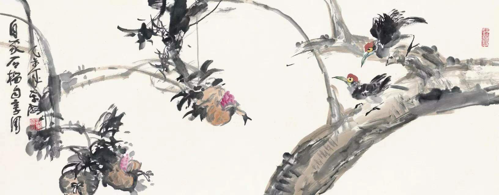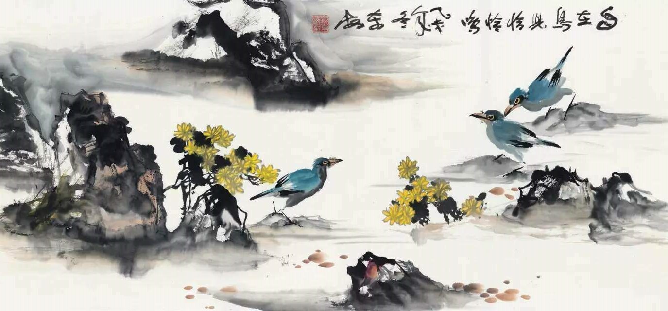 银东海《自在鸟儿恰恰鸣》54cm×117cm