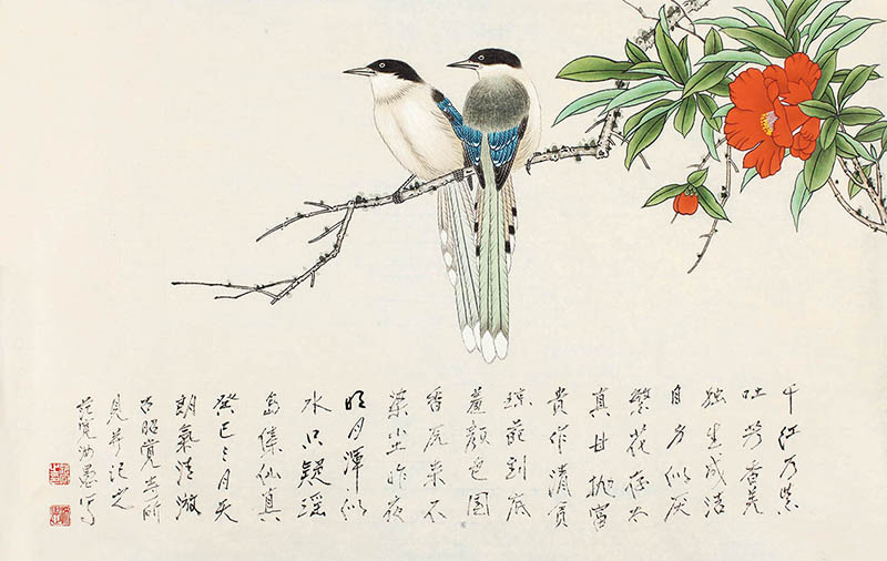 名称:山茶双禽