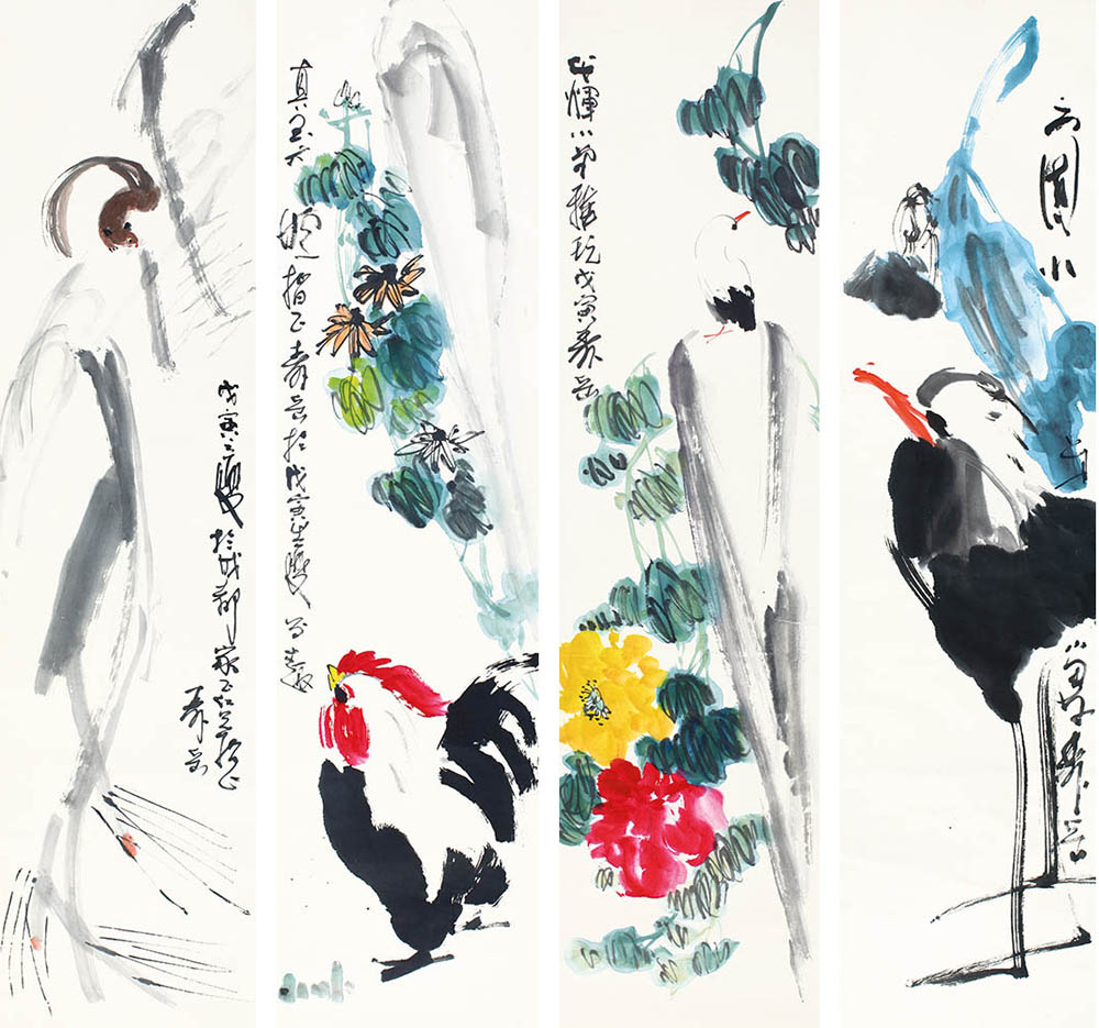 款识:1、真玉大嫂指正,寿岳于戊寅之夏写趣。2、代辉小弟雅玩,戊寅寿岳。3、书圆小弟留存,寿岳;4、戊寅之夏于成都,家正仁兄指正,寿岳。