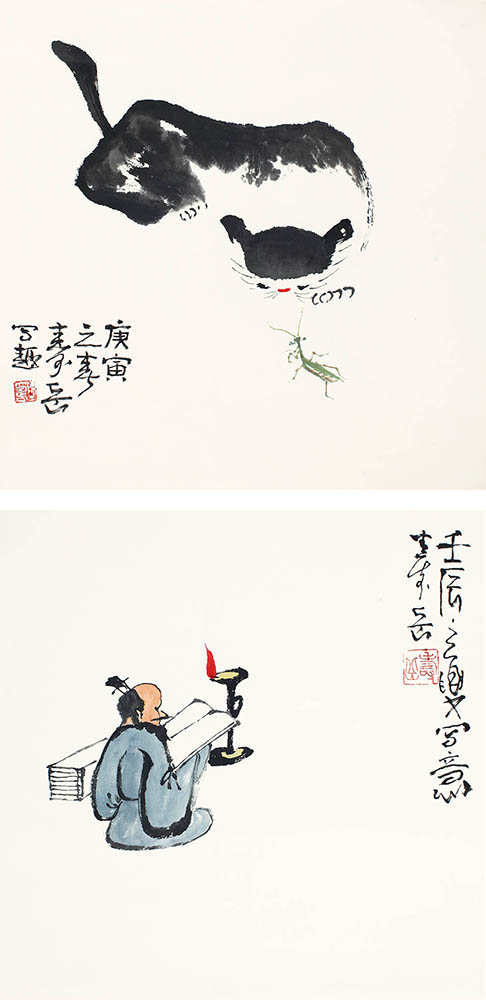 款识:1、壬辰之夏写意,寿岳。2、庚寅之春寿岳写趣。