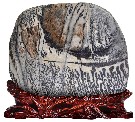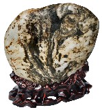 在奇石界,绝大多数石友的观念认为:奇石的价值在于状形类物、在于预示与再现,主张越具象越好。这个观念是从奇石的生成难度与稀有程度上来着眼的,的确,各地许许多多的图纹石种能够生成具象的图案巳非常难得,因此这个观念自然也就得到较为广泛的认同。