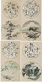 山水、书法团扇四条屏