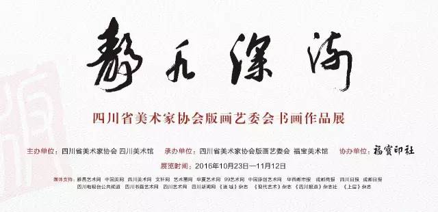 主办单位:四川省美术家协会 四川美术馆 承办单位:四川省美术家协会版画艺委会 福宝美术馆 协办单位:福宝印社 媒体支持:雅昌艺术网 中国美网 四川美术网 文轩网 艺术圈网 华夏艺术网 99艺术网 中国原创艺术网 华西都市报 成都商报 四川日报 成都日报 四川电视台公共频道 四川书画艺术网 四川艺术网 四川新闻网 《读 城》杂志 《现代艺术》杂志 《四川报道》杂志社 《上层》杂志 展览时间:2016年10月23日—11月12日 展览地点:福宝美术馆(成华区崔家店路371号)