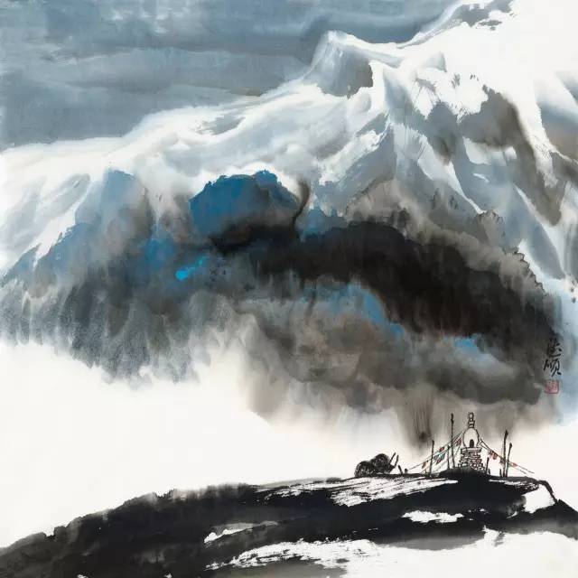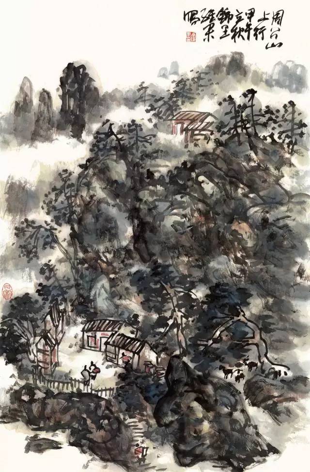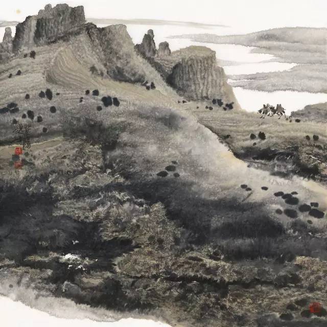 杨 敏 《云里烟邨》中国画 69cm×69cm