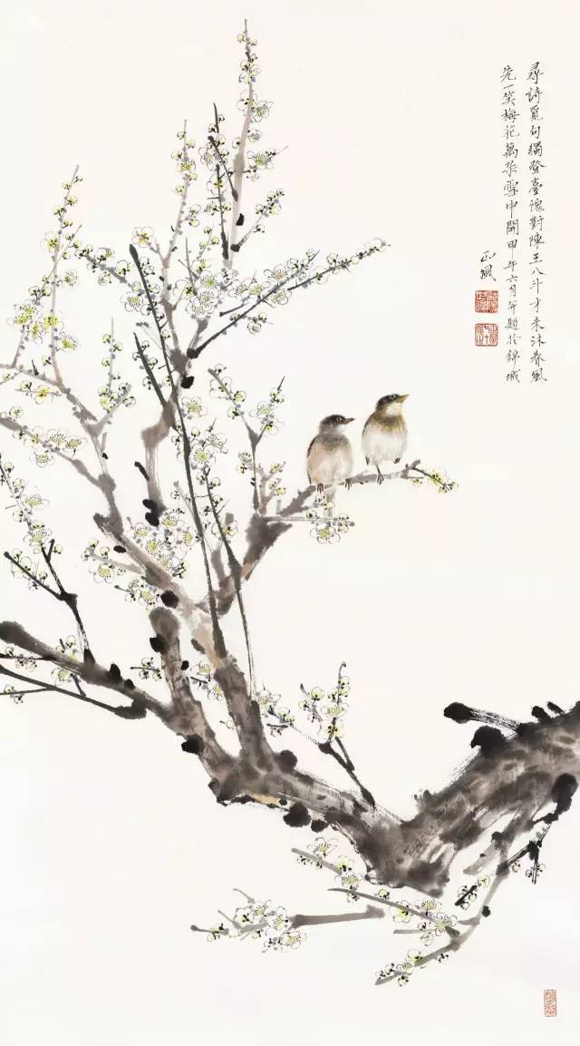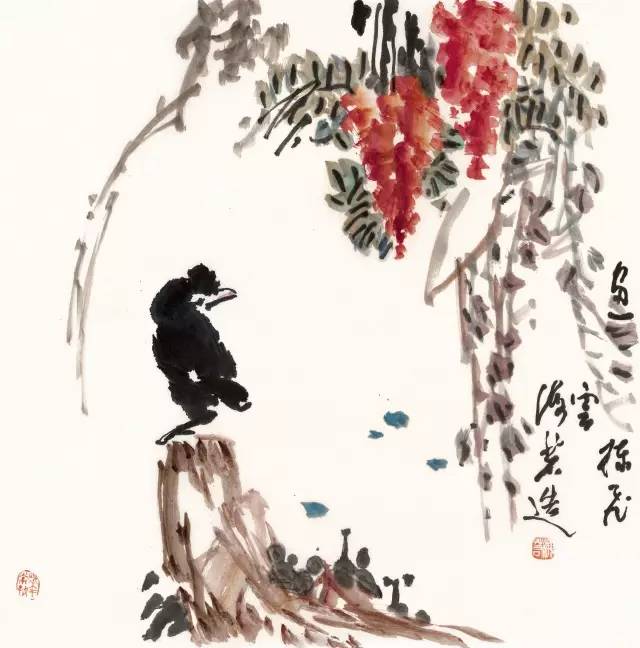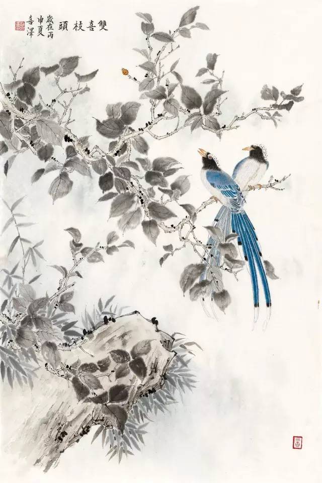罗喜泽 《双喜枝头》中国画 70cm×47cm