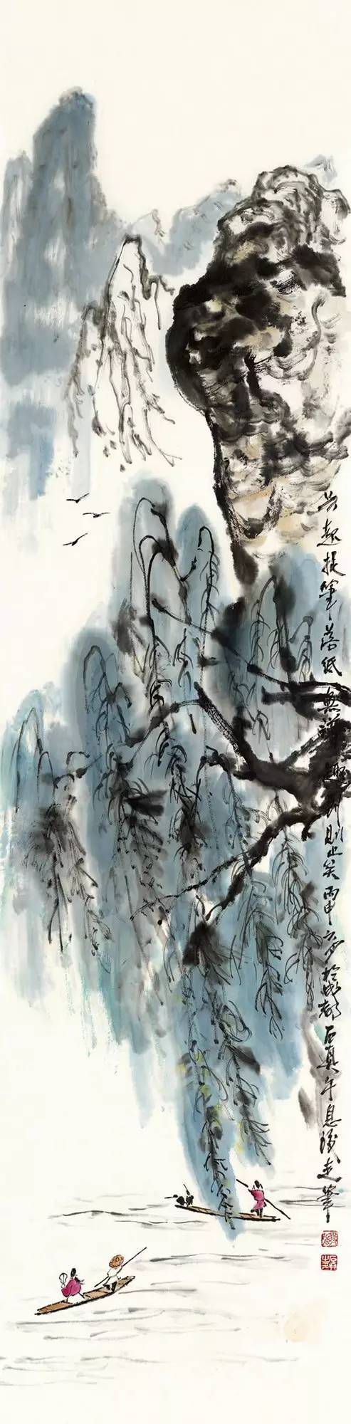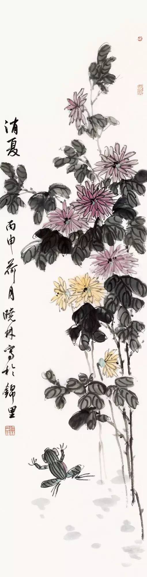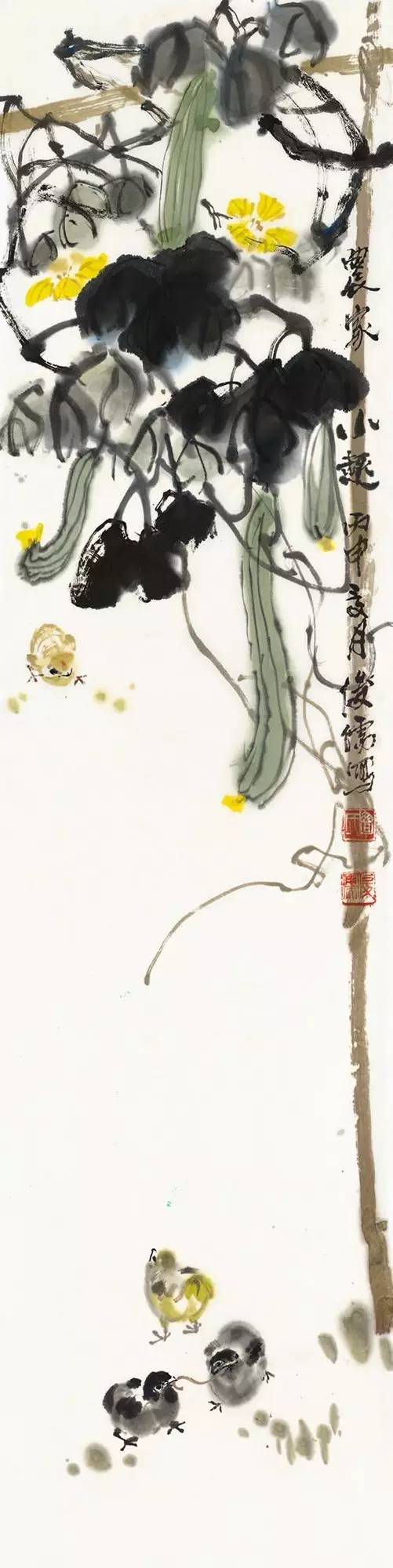 覃俊儒 《农家小趣》中国画 138cm×35cm