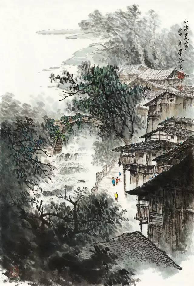 常忠友 《小溪晨雾》中国画 68cm×48cm