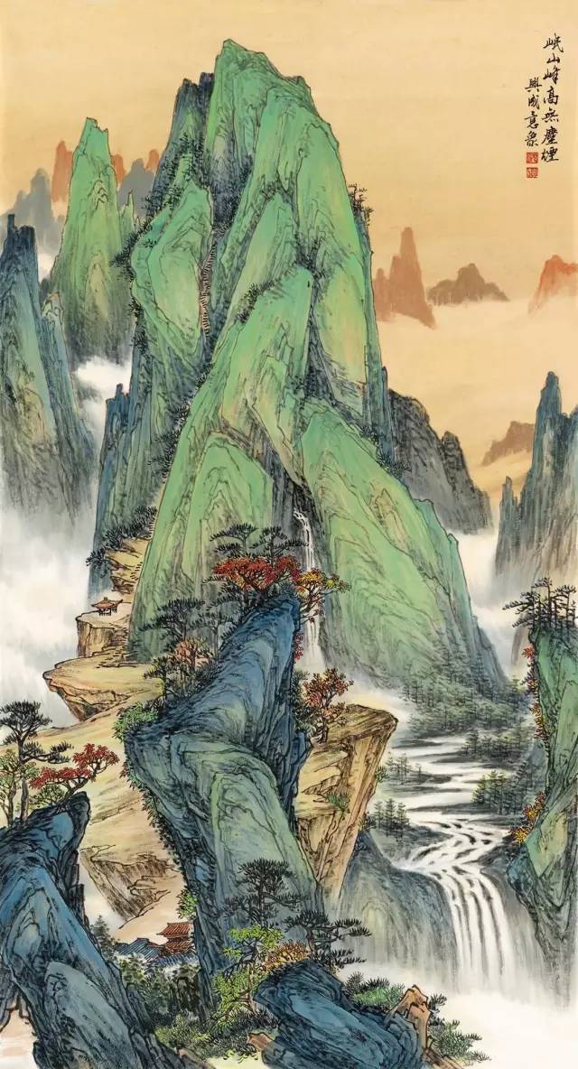沈兴成 《岷山峰高无尘烟》中国画 100cm×54cm