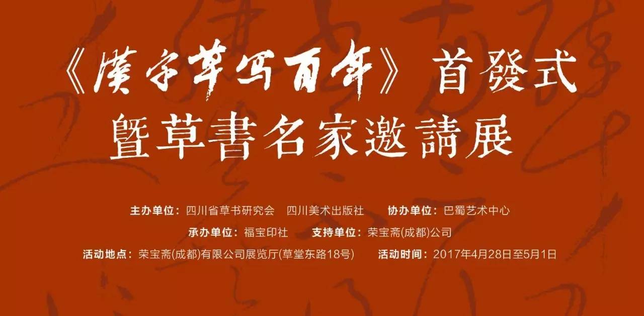 主办单位:四川省草书研究会 四川美术出版社 协办单位:巴蜀艺术中心 承办单位:福宝印社 支持单位:荣宝斋(成都)公司 执行单位:四川省福宝斋文化传播有限公司 活动地点:荣宝斋(成都)有限公司展览厅(草堂东路18号) 开 幕 式:2017年4月28日下午3点 活动时间:2017年4月28日至5月1日