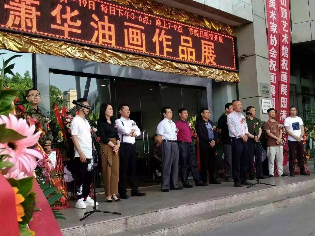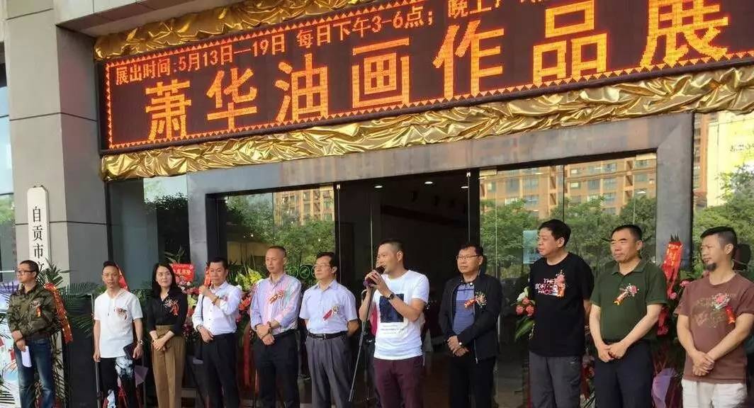 萧华油画作品展于2017年5月13日在自贡市南湖体育中心艺术展厅隆重开幕!参加此次油画展开幕式的嘉宾有:内江师范学院副校长赵明教授,招就处处长崔国新,大千美术学院院长张强。自贡市文联主席刘建勇,副主席明媚,四川省美协副主席张跃进,四川理工学院美术学院院长罗小兵,乐山书画研究会院院长张毅,写生中国成都分会副主席吴仲刚,四川美协典藏部副部长黄芸芸,自贡教科所教研员缪陆伟。还有来自成都,重庆,乐山,宜宾,内江,泸州,自贡等地级市的美术协会的主要负责人和嘉宾们,朋友们,理工学院美术学院的学生们,神话艺术教育的同学家长们。开幕式由自贡市美协秘书长杨勇主持。开幕式结束观众有序的进去展厅观展,交流,气氛十分热烈!画展研讨会由四川理工学院美术系主任邓军主持,艺术评论家孙刚,陈代星,813艺术基地主席李小华,宜宾聊狂斋艺术社秘书长胡岚,写生中国自贡分会主席周玉林,自贡山顶艺术馆馆长范毅,自贡画院院长邹世俊,乐山书画艺术研究院副院长陈天杰,富顺县美术家协会主席何杰以及参会嘉宾们共同参与研讨会,并就艺术发展方向和主张提出评论。展览过程现场配有红酒会,抽奖活动,开幕式结束进行欢迎午宴,嘉宾们继续进行艺术交流。泸州艺术馆著名画家曾付平,宜宾美协,屏山美协等领导下午也赶到现场进行祝贺。此次展览时间为5月13日到5月20日,开馆时间为每天下午三点到晚上九点。请前来参观的朋友们,市民们注意开馆时间。