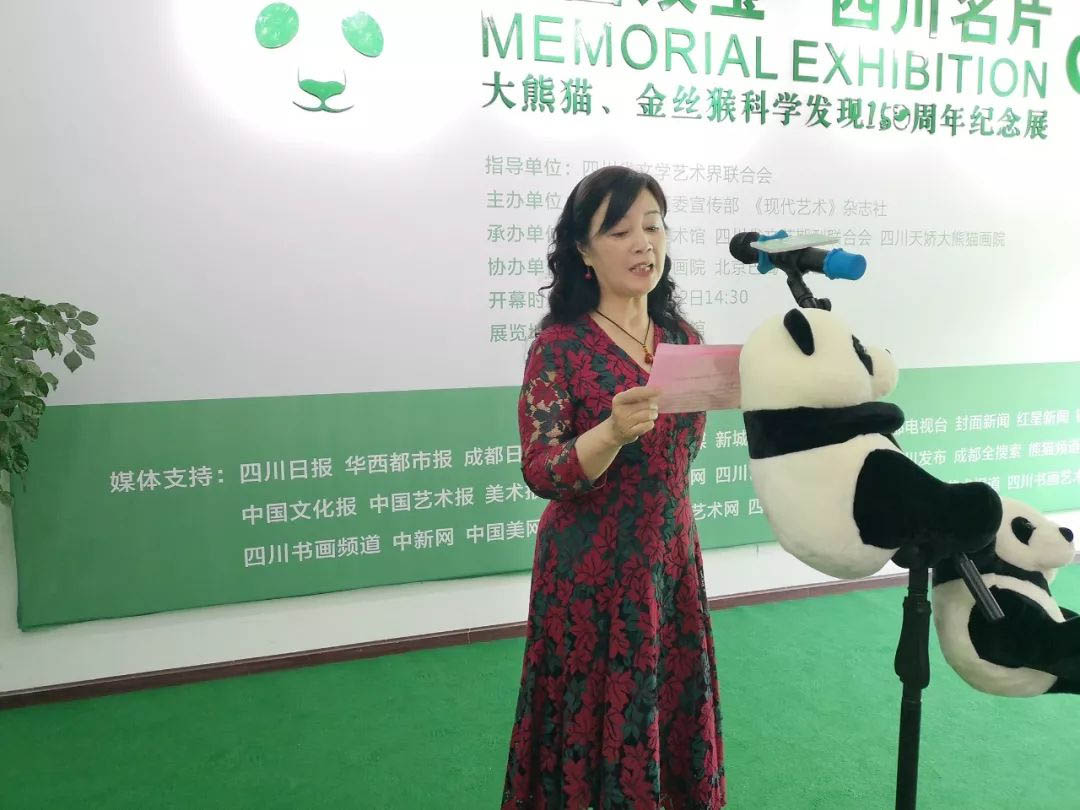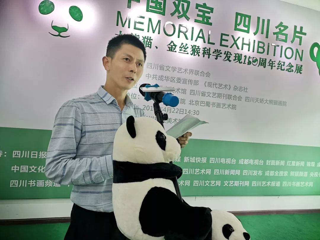 2019年4月22日14点30分,为纪念大熊猫、金丝猴科学发现150周年,献礼中法建交55周年,并更好展示大熊猫、金丝猴的自然灵趣与艺术之美,感受“中国双宝•四川名片”的艺术内涵,推动大美四川、生态四川、文化四川的发展,进一步加强四川文化交流,促进中华文化传播。由四川省文学艺术界联合会指导,中共成华区委宣传部、《现代艺术》杂志社主办,福宝美术馆、四川省文艺期刊联合会、四川天娇大熊猫画院承办,四川国颂书画院、北京巴蜀书画艺术院协办的“中国双宝·四川名片——纪念大熊猫、金丝猴科学发现150周年纪念展”系列活动在福宝美术馆隆重开幕!
