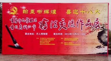 2012年10月24日上午10∶00,由中共重庆市九龙坡区委宣传部、中共贵州省铜仁市委宣传部、重庆市九龙坡区文联、贵州省铜仁市文联、重庆市九龙坡区政协诗书画院主办,重庆市九龙坡区书法家协会、贵州省铜仁市书法家协会承办,重庆巴人博物馆,重庆市九龙坡区老年书画研究会协办的——重庆九龙坡·贵州铜仁市书法交流作品展在重庆市九龙坡巴人博物馆隆重开幕。