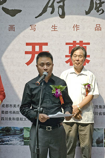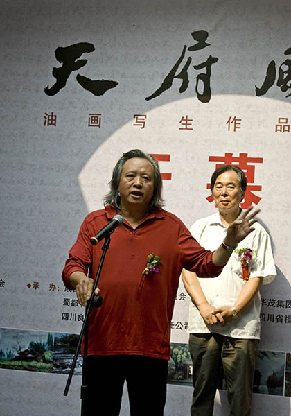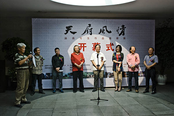 金色十月,秋高气爽。一场以展示天府秀美风光和质朴民风为主题的油画写生作品展,给美丽的蓉城增添了一道新的风景。昨日,由成都市文学艺术界联合会和成都市美术家协会主办,成都市美术家协会油画艺术委员会、蜀都书画院、四川良和慈航文化传播有限责任公司联合承办、四川省福宝斋艺术品展示制作中心协办的“天府风情--油画写生作品邀请展”,在浣花溪公园内的文艺之家拉开帷幕。成都市文学艺术界联合会副主席郭月和四川省美术家协会常务副主席兼秘书长梁时民、四川省美术家协会副主席、成都市美术家协会主席刘正兴等文艺界领导亲临展场祝贺并讲了话,成都各书画院负责人、知名画家和社会各界人士二百余人参加了开幕式。 “天府风情--油画写生作品邀请展”是成都市美协与民营企业家首次合作举办的油画写生作品展览。举办这个展览旨在倡导艺术创作面向生活,深入生活和表现生活。画展展出的50幅作品,虽然是受邀画家众多写生作品中的一部分,但却精华荟萃,精彩纷呈,多角度、多侧面地展示了天府四川的历史文化、人文景观和风土人情。一幅幅生动清丽的写实画面,记录着艺术家们对生活的热爱和对天府四川悠久历史文化的认知、感悟和思考,寄托着艺术家们浓郁的乡土情怀和对美好未来的希冀与追求。 此次以“天府风情”为主题的油画写生邀请展,得到了全市专业和业余油画家的积极响应和企业家的有力支持。大家一致认为,“天府风情”这个主题创意新颖,富有时代意味和本土特色,有必要坚持下去,继续围绕这个主题举办系列展览,挖掘天府之国厚重的历史文化积淀、描绘家乡优美的自然风光、人文景观,反映多姿多彩的民俗民情,展示人们的时代风貌。此次画展于10月16日结束。 (上图为:开幕式会场)