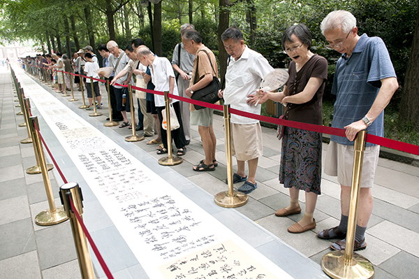 “中国梦”成都书法百人百米长卷创作展示活动在人民公园举行 (此长卷由福宝斋书画装裱广场装裱)