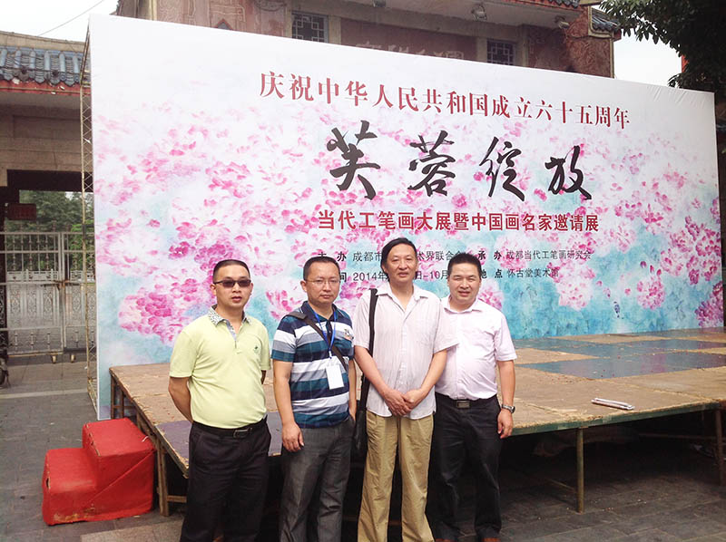 开幕式结束后,执行此次画展的福宝斋文化传播有限公司向运华、向运成兄弟俩与成都当代工笔画会会长江溶、杨钢老师合影