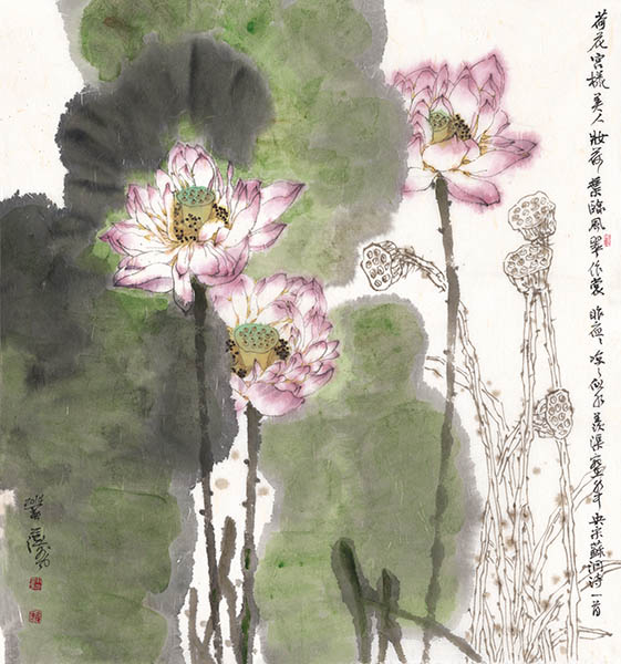 由环球中心斯为美术馆策划主办的“江风玉树——范澍宁李江国画作品展”,于4月12日下午3点在成都的代表性建筑、环球中心南区的斯为美术馆隆重开幕。来自成都、省内、深圳、以及国外的嘉宾朋友三百余人出席了开幕酒会。 范澍宁、李江伉俪均为资深中国美协会员,四川省美协理事,中国画坛实力派画家,巴蜀画派代表人物。近年曾应邀在广东汕头、茂名、成都等地多次成功举办过伉俪画展。最近,他们又得到了德国济根市政府邀请,将于今年11月双双赴德国举办展览和相关艺术活动。这次展览展出了他们近期创作的国画作品40余幅,范澍宁重彩荷花(香云)系列、李江芙蓉花语系列首次和观众见面。得到了到场嘉宾和业界人士的一致好评。 此次范澍宁重点展出其重彩荷花系列,包括《碧叶摇风》《香云》《荷之舞》等作品。不仅可以领略到东方水墨艺术的无穷魅力,又能感受到西方色彩的斑斓张扬,使中国长期被放逐的笔精墨妙重新被深情地呼唤出来,令观者感受到那种纯净质朴的人静格高的境界。 而李江的国画则别具特色,题材广泛,除了我们熟悉的仕女、乡情画,这次还特别推出芙蓉花语新作系列,令人们眼前一亮。作品在疏与密、浓与淡、虚与实的笔墨中,传达出来的节奏与生命合成一体,生命与韵律合成一体的中华艺术哲学。
