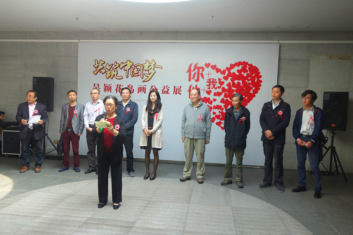 为了让边远山区的孩子们体会到祖国的伟大和社会的温暖,4月24日下午,由成都市美术家协会主办的《“共筑中国梦”吴颖花鸟画公益展》在浣花溪畔的《成都文艺之家》成功举行,展期三天。爱心画家吴颖女士拿出近年创作的五十余幅作品进行义卖,展览结束后,未卖出作品由乐山市温州商会爱心人士全部义买,所得善款,由《聚成爱心公益基金》专款专用,用于奖励峨边县觉莫中心学校品学兼优的学生及帮助特困家庭学生的学习及生活。 开幕式由成都市美术家协会副主席刘光灿先生主持,到场的佳宾有:成都市文联梁红副主席、文艺部廖主任、成都市美协江溶副主席、成都市美协秘书长刘光灿、李力知,四川省巴蜀诗书画研究会秘书长周啸波、肖新苗,四川省巴蜀中国画研究院办公室主任杜允中,乐山慈善总会张会长,乐山温州商会副会长王成华,乐山《三江都市报》记者一行五人,以及四川省福宝斋文化传播有限公司向运华、向运江等等。