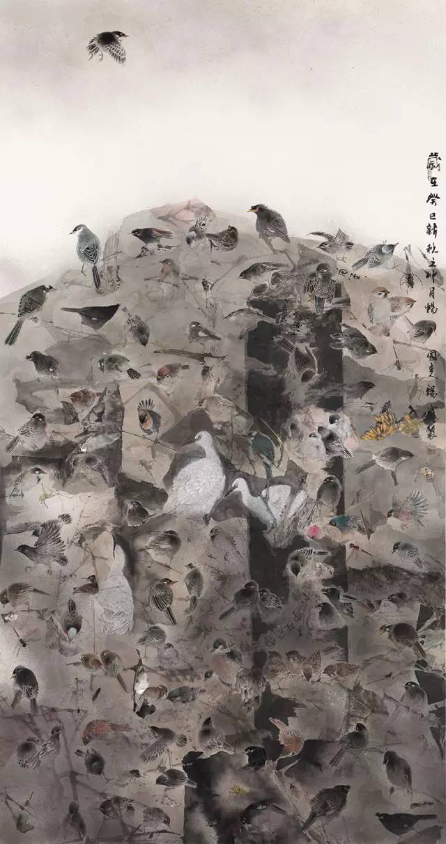汤 宾 百鸟图 200cm×100cm(一等奖)
