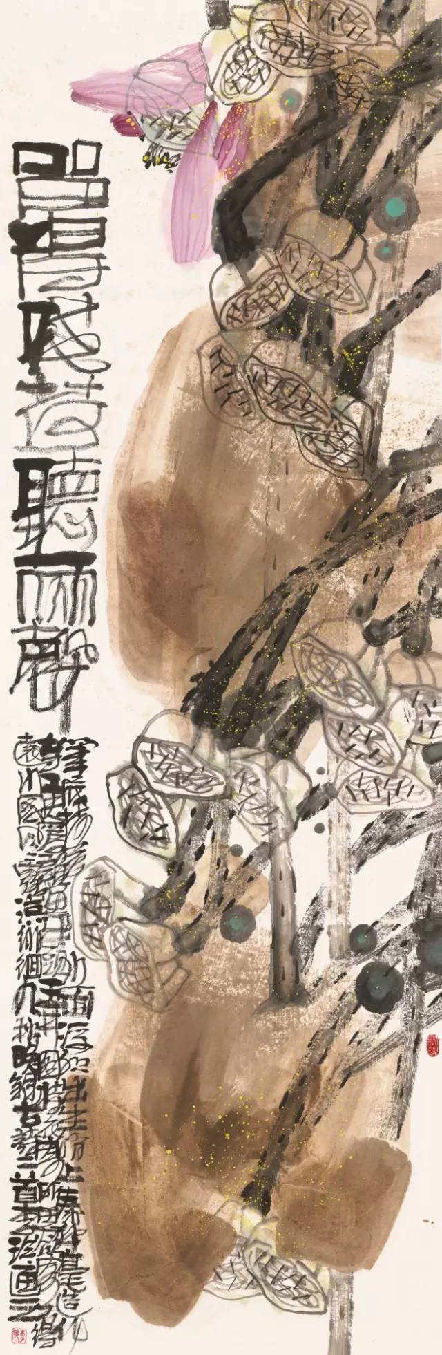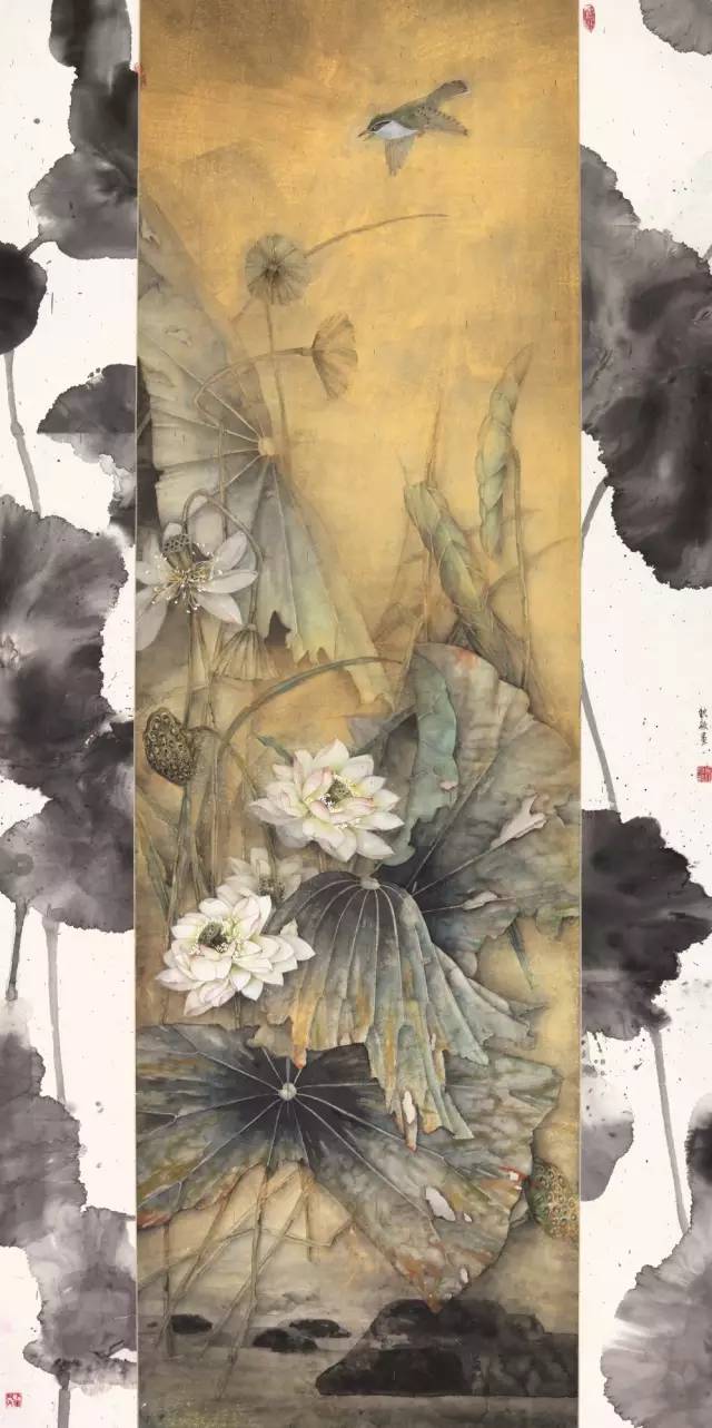 入选作品:李玲《留得残荷听雨声》197cm×64cm
