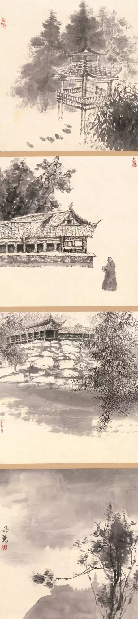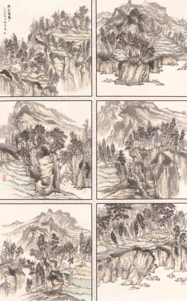 入选作品:黄英《山水组画》180cm×70cm