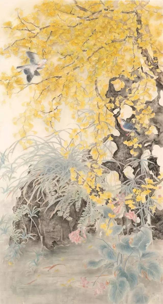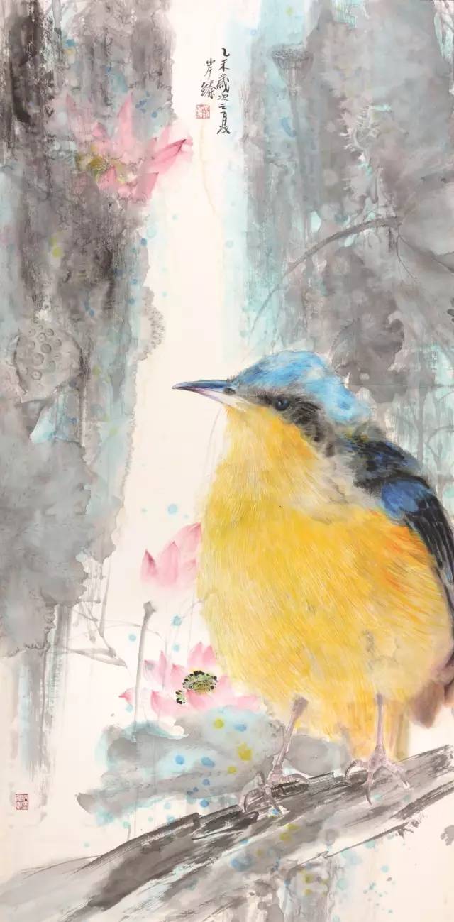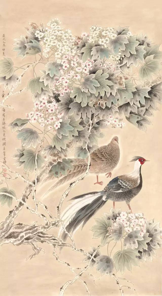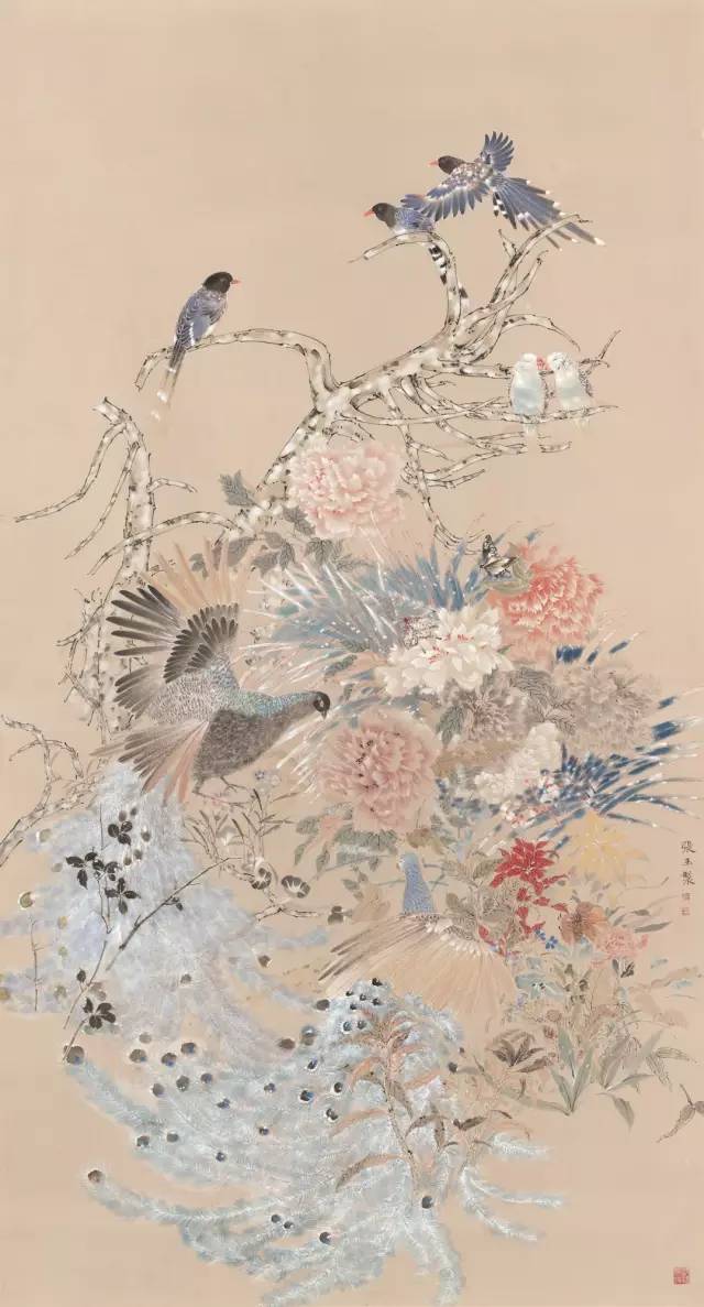 入选作品:张玉《丽日集禽图》180cm×97cm