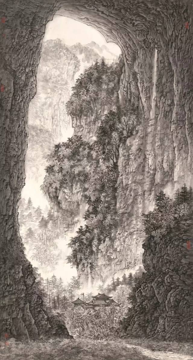 入选作品:张良《天坑神韵》180cm×97cm