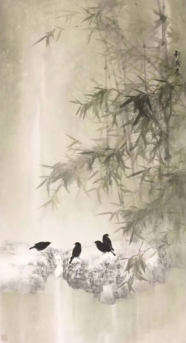 入选作品:郑邦兵《竹下听泉》180cm×90cm