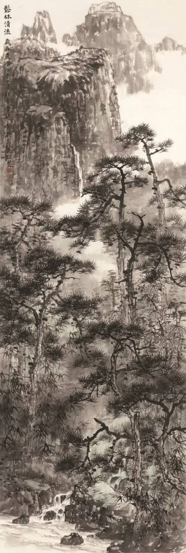 入选作品:蒋雪晴《松林清流》177cm×59cm