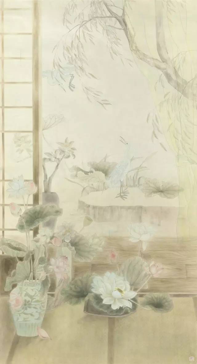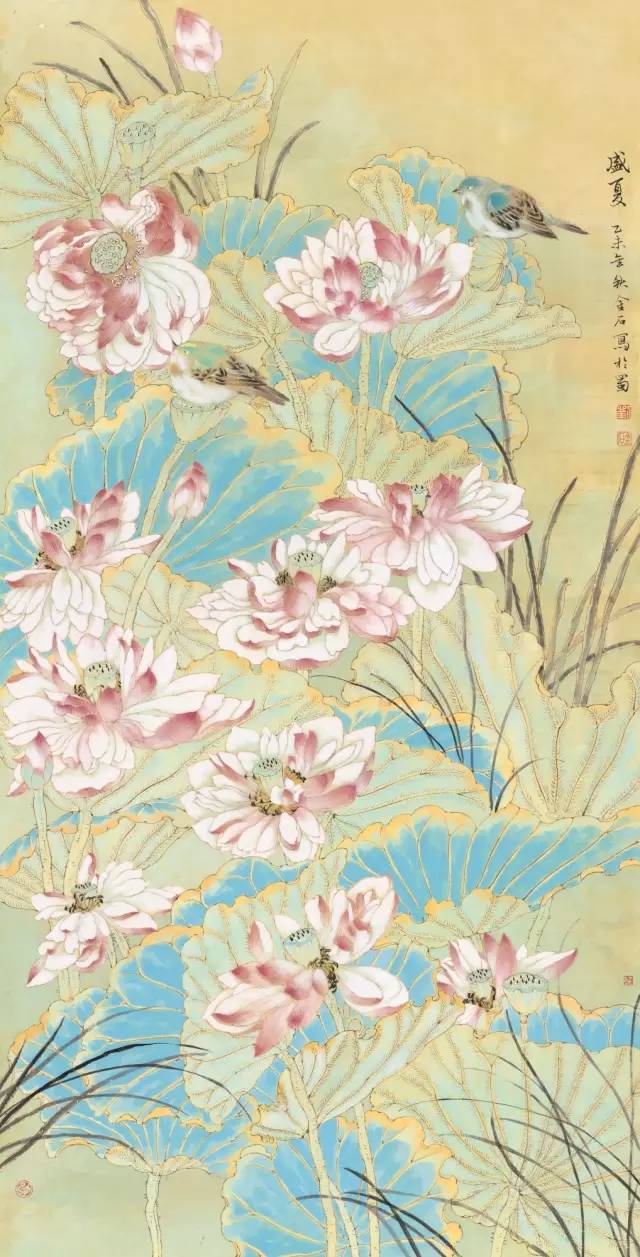 入选作品:何君《心上莲花次第开》136cm×66cm