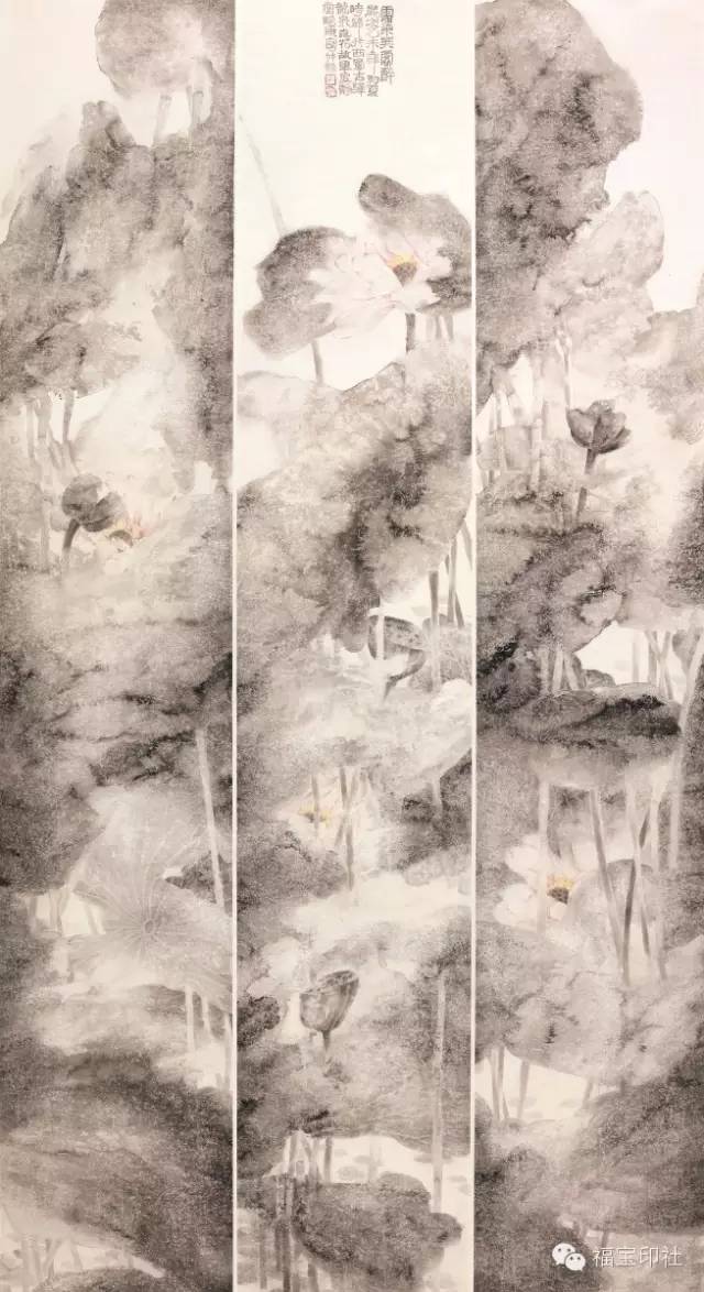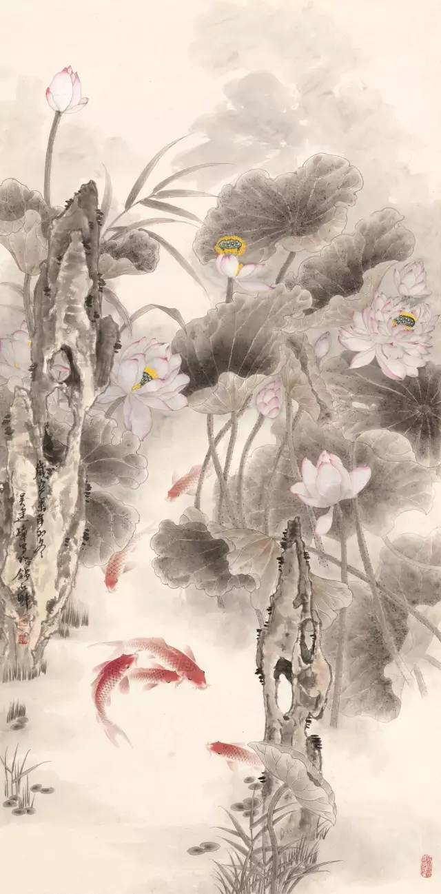 入选作品:谭兵《鱼戏菡萏图》170cm×68cm