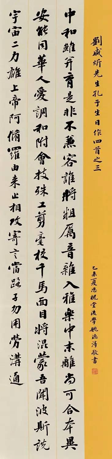姚德淳 刘鉴泉先生孔子生日四首之三 140cm×34cm