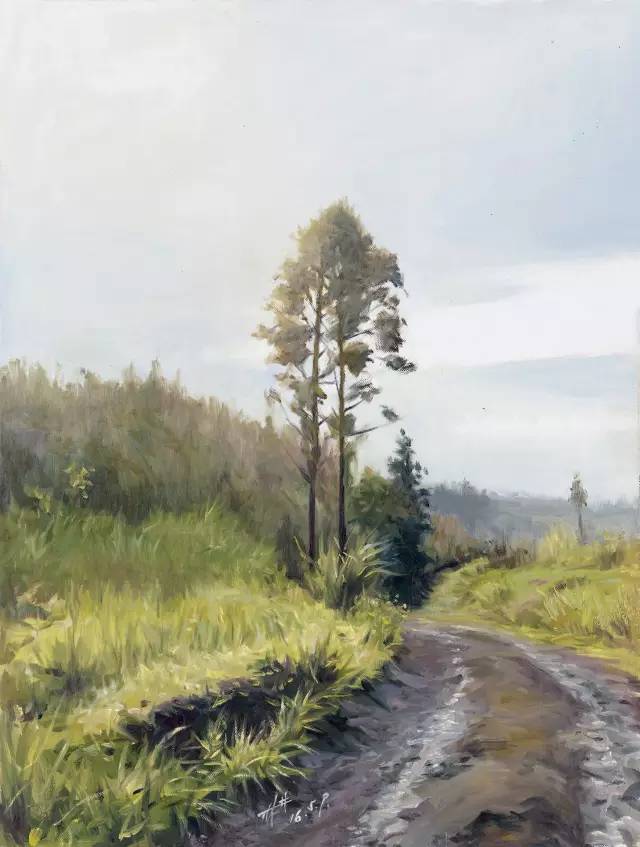 油画作品:林雪松《泥泞的小路》60cm×80cm