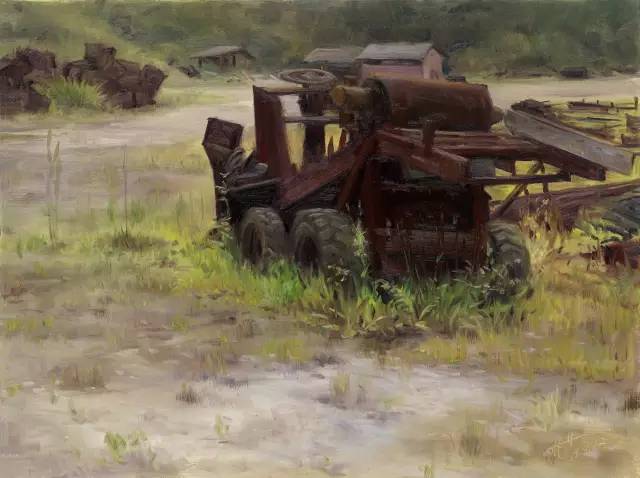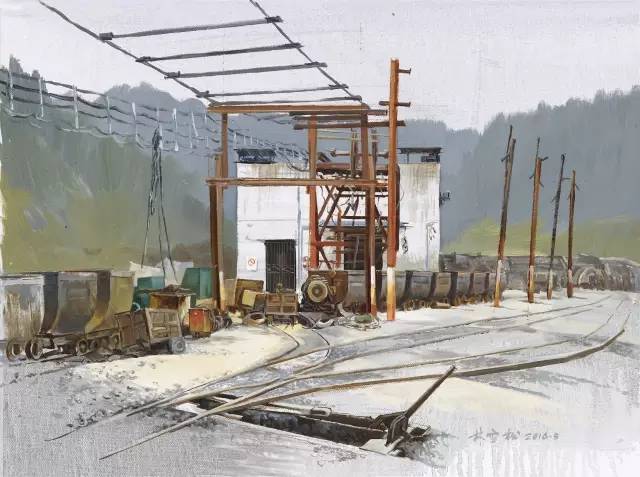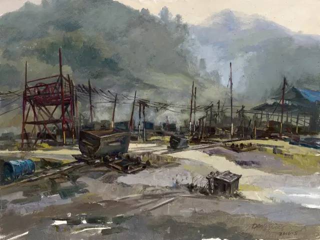 油画作品:廖先进《关停的小煤矿》80cm×60cm