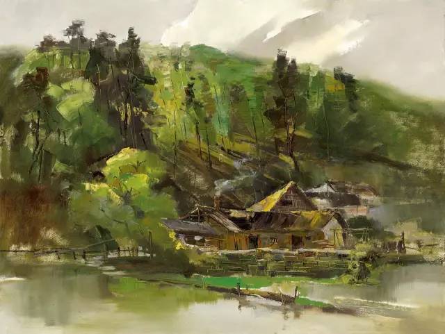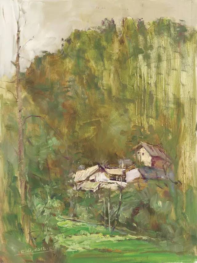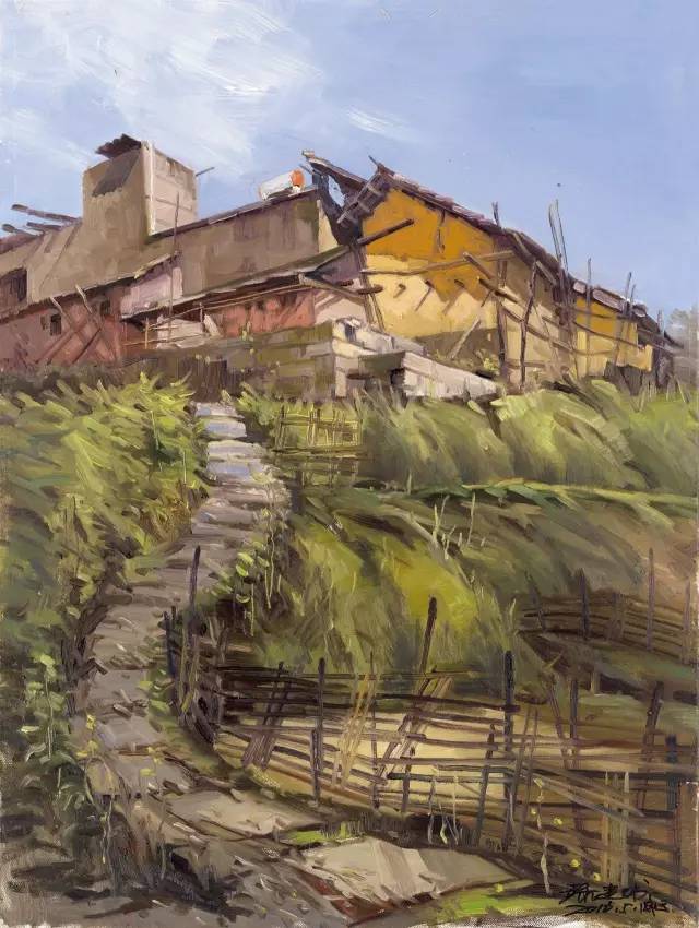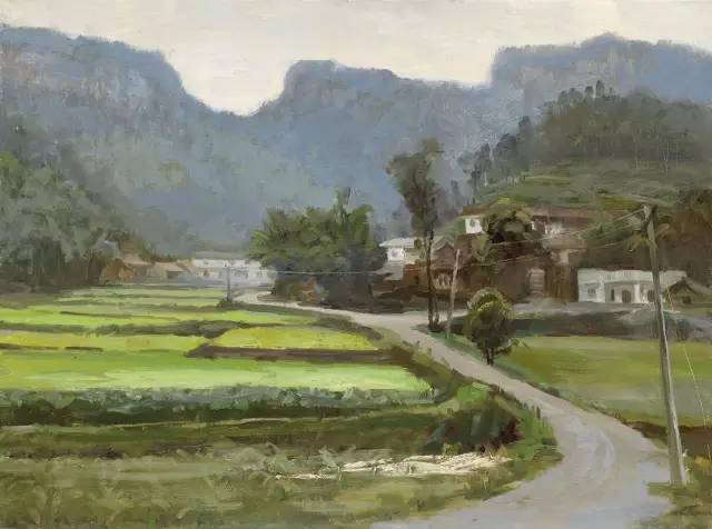 油画作品:江福建《高顶寨初夏》60cm×80cm