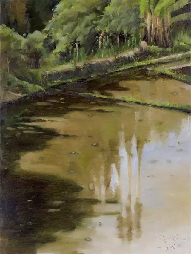油画作品:江福建《向家秧田夏正绿》60cm×80cm