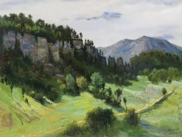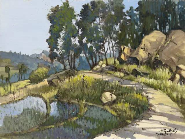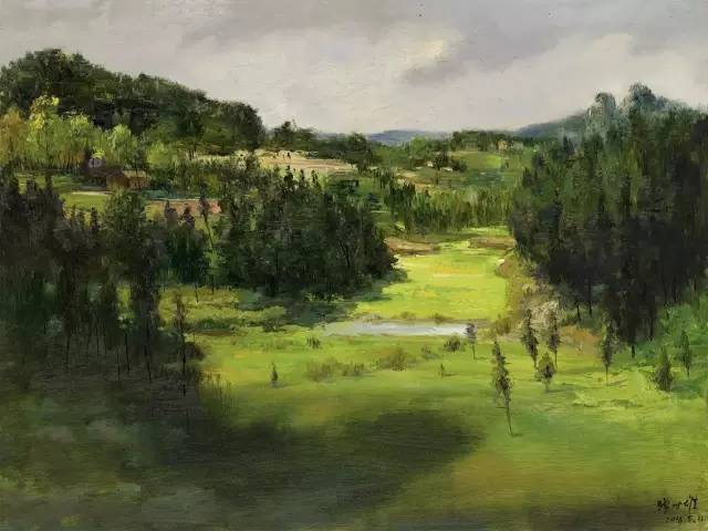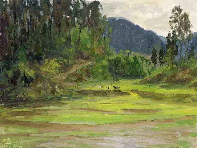 油画作品:廖先进《绿野悠悠》60cm×80cm