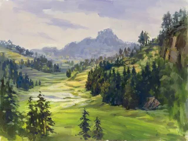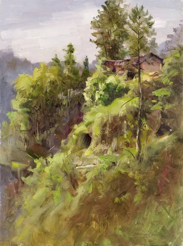 油画作品:黎建伟《山坳巅上》80cm×60cm