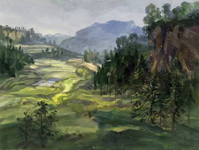 油画作品:廖先进《五月的向家山》60cm×80cm