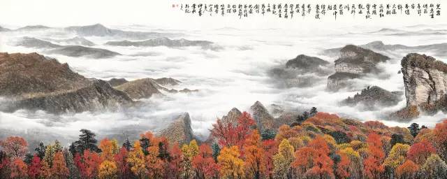 美术作品:李兵 《光雾秋色》370cm×140cm