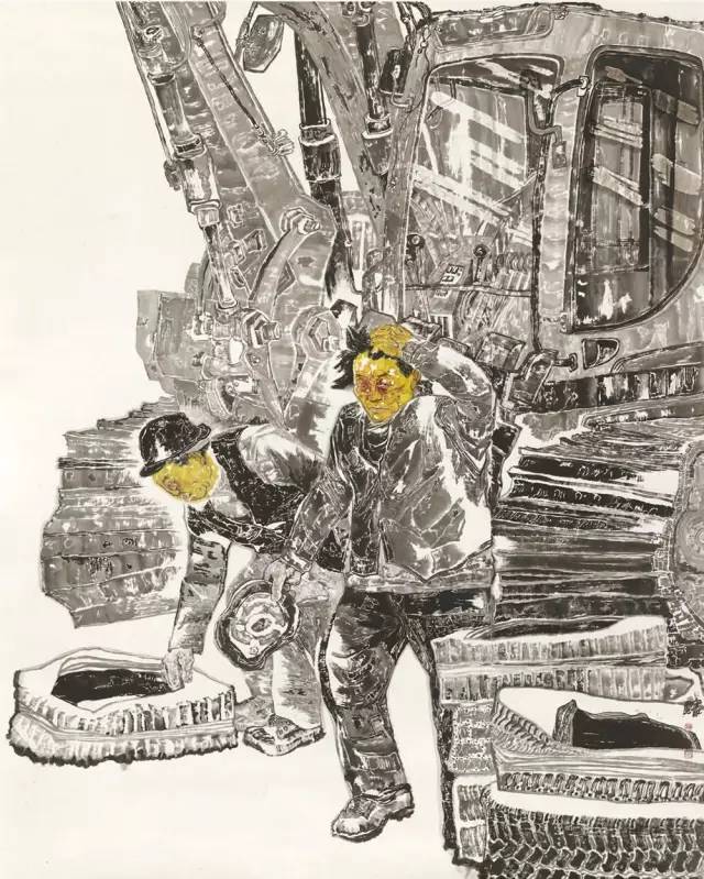 美术作品:谯守红《 民工·护路》244cmX195cm