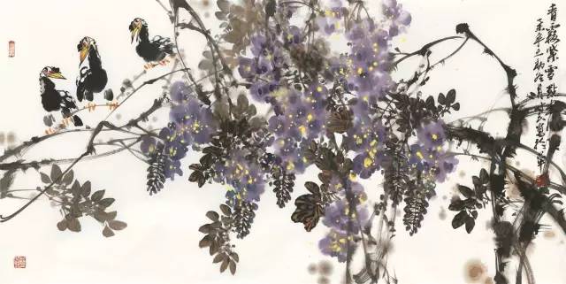 美术作品:梁时民《青霞紫雪点春风》137cm×79cm