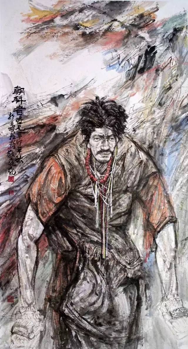 敬庭尧 《朝拜者》纸本 180cm×76cm 2011年