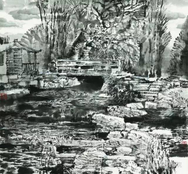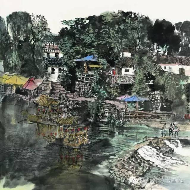 管苠棡《丙安古镇红军渡口写生》42cm×56cm