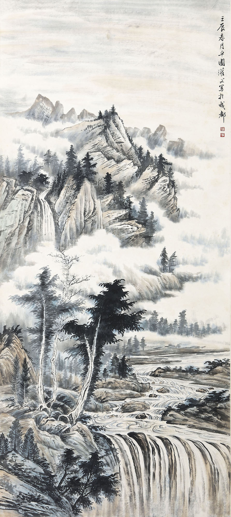 简介:冯灌父(1884-1969):名骧、别号平园,四川汉阳人,善画山水,曾为北京人民大会堂作画。山水、人物、花鸟等国画作品皆精,张大千曾说:“烟云烘染,人物线条,自愧不如灌父。”冯工书法,尤善擘窠大字。