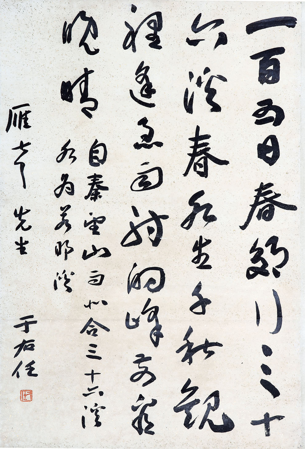 简介:于右任(1879-1964):陕西三原人,祖籍泾阳,是中国近现代政治家、教育家、书法家。原名伯循,字诱人,尔后以“诱人”谐音“右任”为名;别署“骚心”“髯翁”,晚年自号“太平老人”。于右任早年系同盟会成员,长年在国民政府担任高级官员,同时也是中国近代书法家,复旦大学、上海大学、国立西北农林专科学校(今西北农林科技大学)等中国近现代著名高校的创办人。