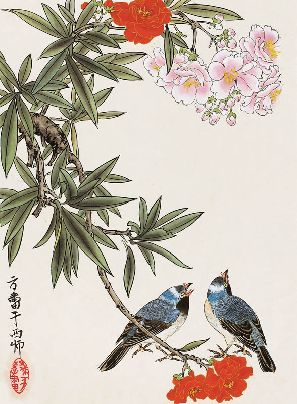 名称:《方蕾书画集》夹竹桃山雀(1996年)