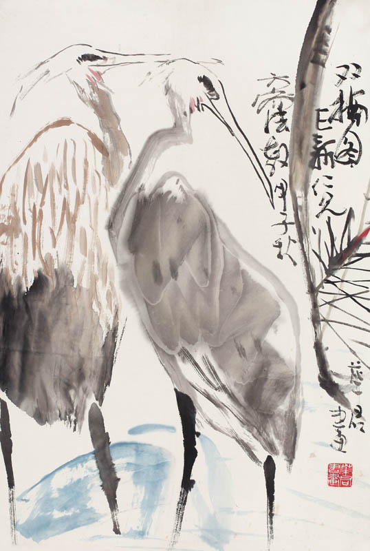款识:双栖图。正新仁兄方家法教,甲子秋华君画。