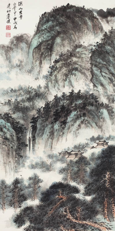 款识:深山古寺白云中。甲戌春建初萧朴。