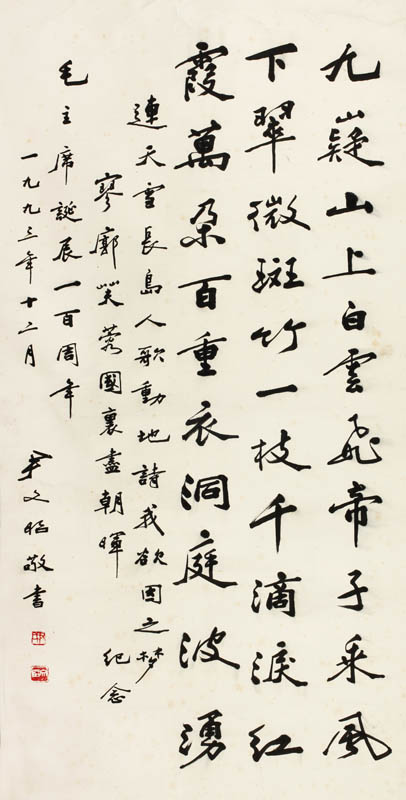 款识:纪念毛主席诞辰一百周年,一九九三年十二月,尹文昭敬书。